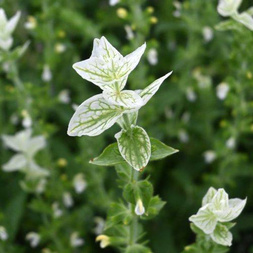 Dusksalvie er med sine klare, stærke farver en helt fantastisk plante, som forvirrer lidt, når man kommer tæt på og opdager, at det slet ikke er en blomst i gængs forstand. Selve blomsterne er nemlig bare nogle små, lidt undseelige dutter, som sidder i bladhjørnerne, d.v.s. i overgangen mellem blad og stængel.
